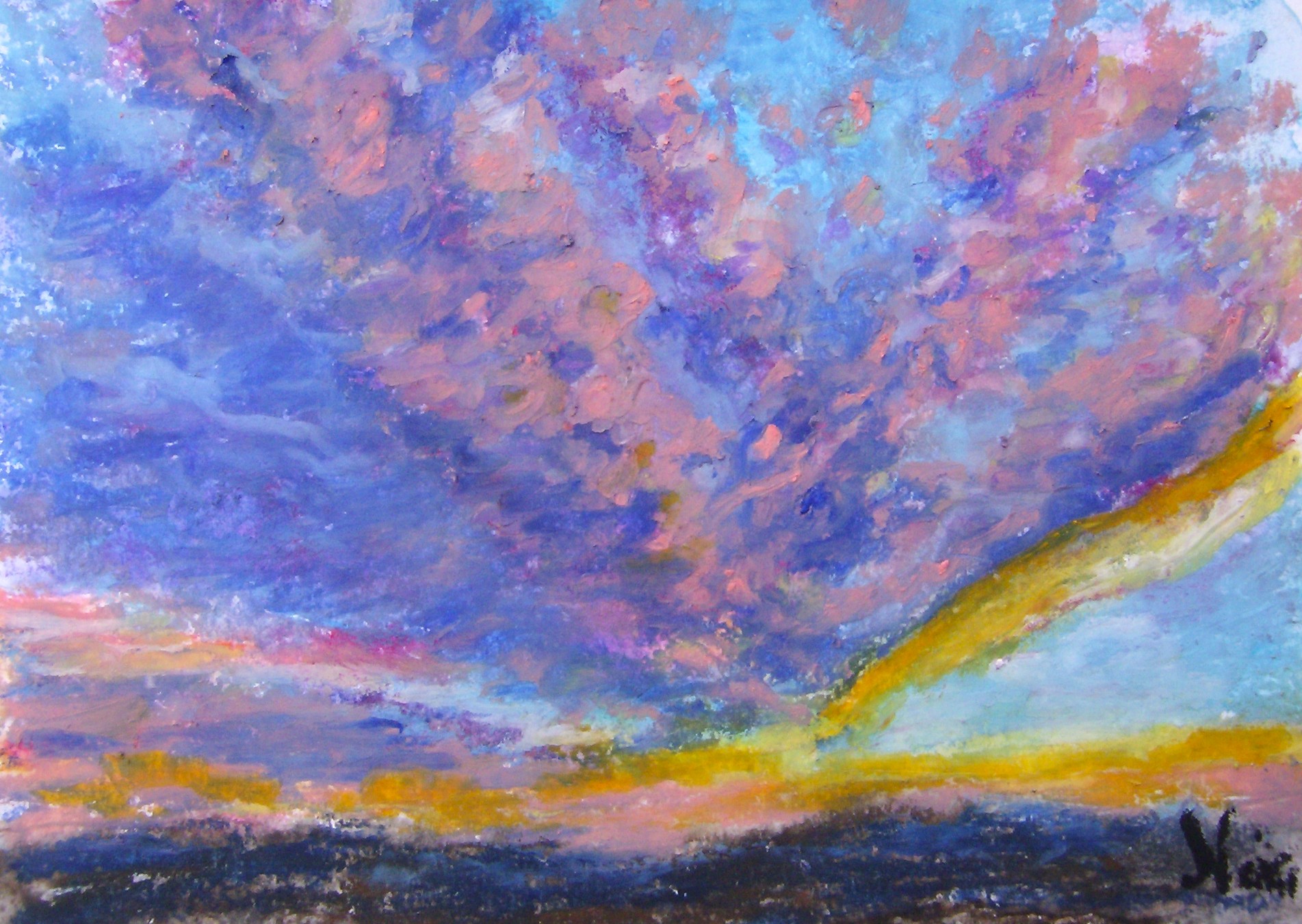 Created with wax pastels, water, and oil pastels on mixed media paper